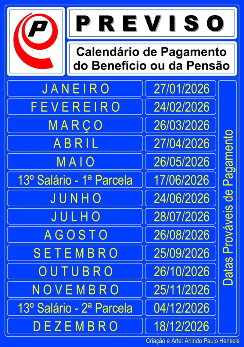 Calendario de pagamento de 2026 para aposentados e pensionistas.